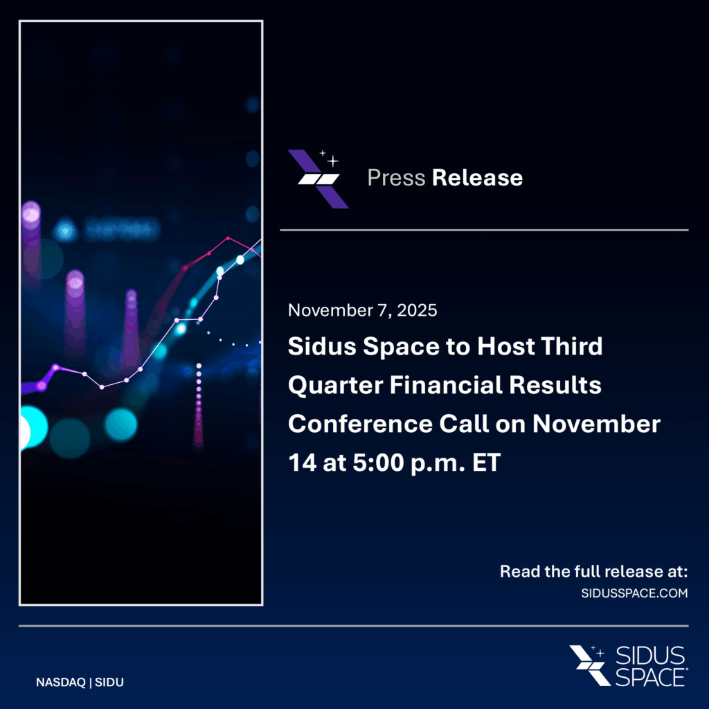 Sidus Space to Host Third Quarter Financial Results Conference Call on November 14 at 5:00 p.m. ET