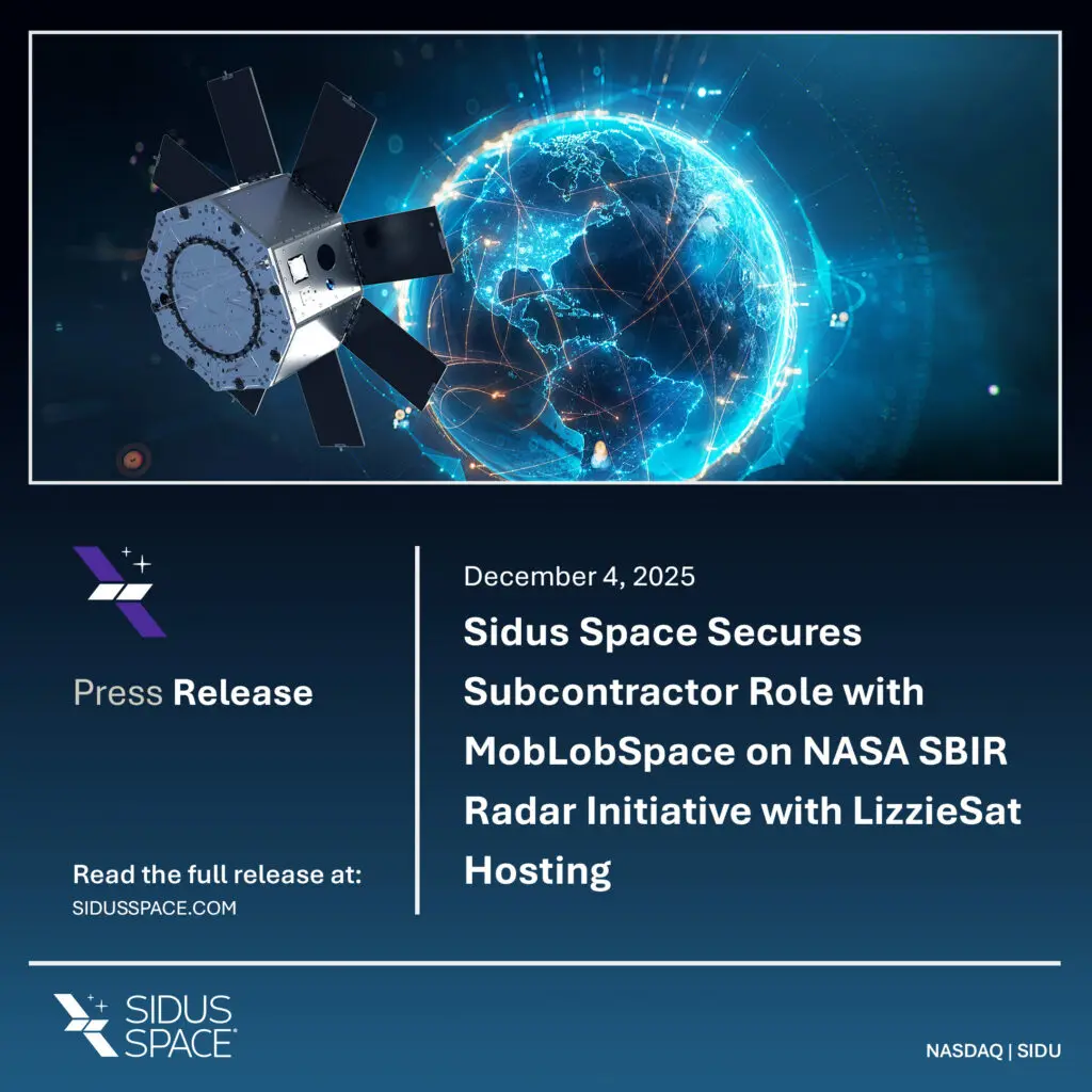 Sidus Space Secures Subcontractor Role with MobLobSpace on NASA SBIR Radar Initiative with LizzieSat Hosting